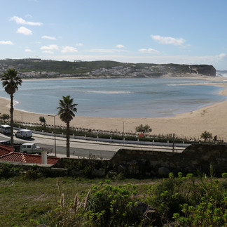 Seaside walkways and beach in Foz do Arelho, Portugal.